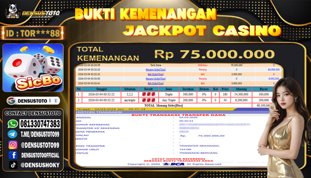 KUMPULAN BUKTI JACKPOT DENSUSTOTO MENANG BERAPAPUN
